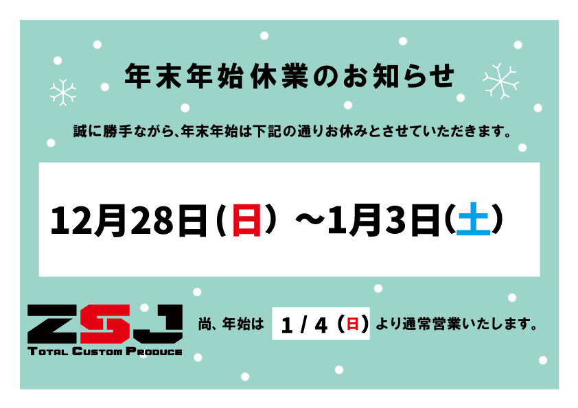 弊社は下記の期間を年末年始休暇とさせていただきます。